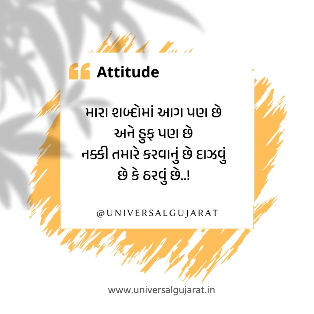 શું તમે ગુજરાતીમાં Attitude શાયરી શોધી રહ્યાં છો ? તો તમે બિલકુલ સાચા સ્થાને આવ્યા છો!