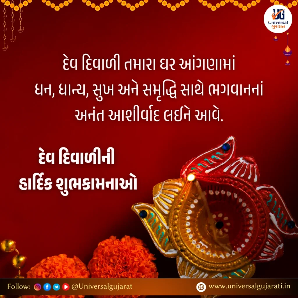 આ દેવ દિવાળી આપના જીવનમાં ધન-ધાન્ય, સુખ-શાંતિ, સમૃદ્ધિ તથા અનંત દેવશક્તિના આશિષ લઈને આવે તેવી અભ્યર્થના.!
