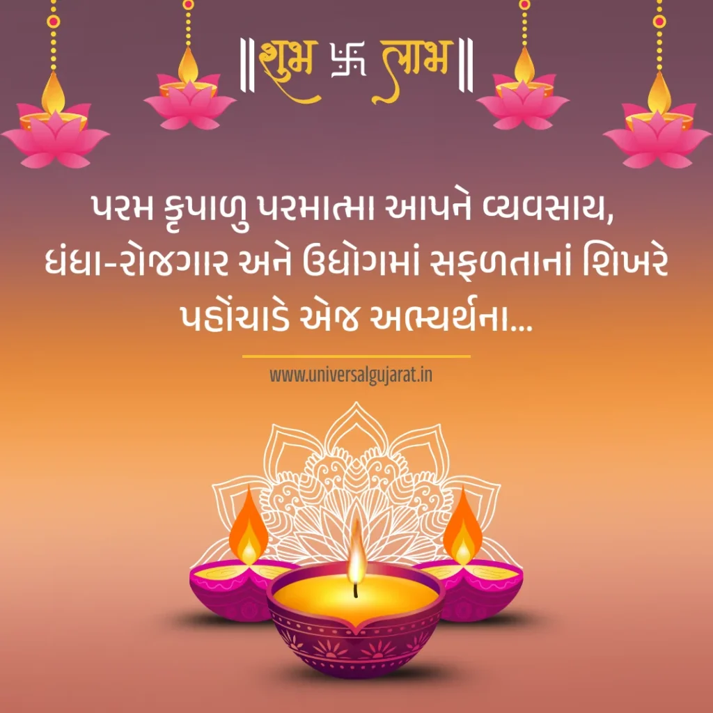 પરમ કૃપાળુ પરમાત્મા આપને આપના વ્યવસાય, ધંધા-રોજગાર, ઉદ્યોગ તેમજ પારિવારિક જીવનમાં સુખ, સફળતા અને સંપત્તિથી પરિપૂર્ણ કરે એવી અભ્યર્થના સહ ગુણિયલ ગુજરાતનો હરેક નાગરિક પોતાના પરિશ્રમ થકી ઉચ્ચત્તમ, સ્વર્ણિમ લક્ષ્યો સાધીને રાજ્યમાં વિકાસ ઉર્જાનો વાહક બને એવી અભિલાષા.