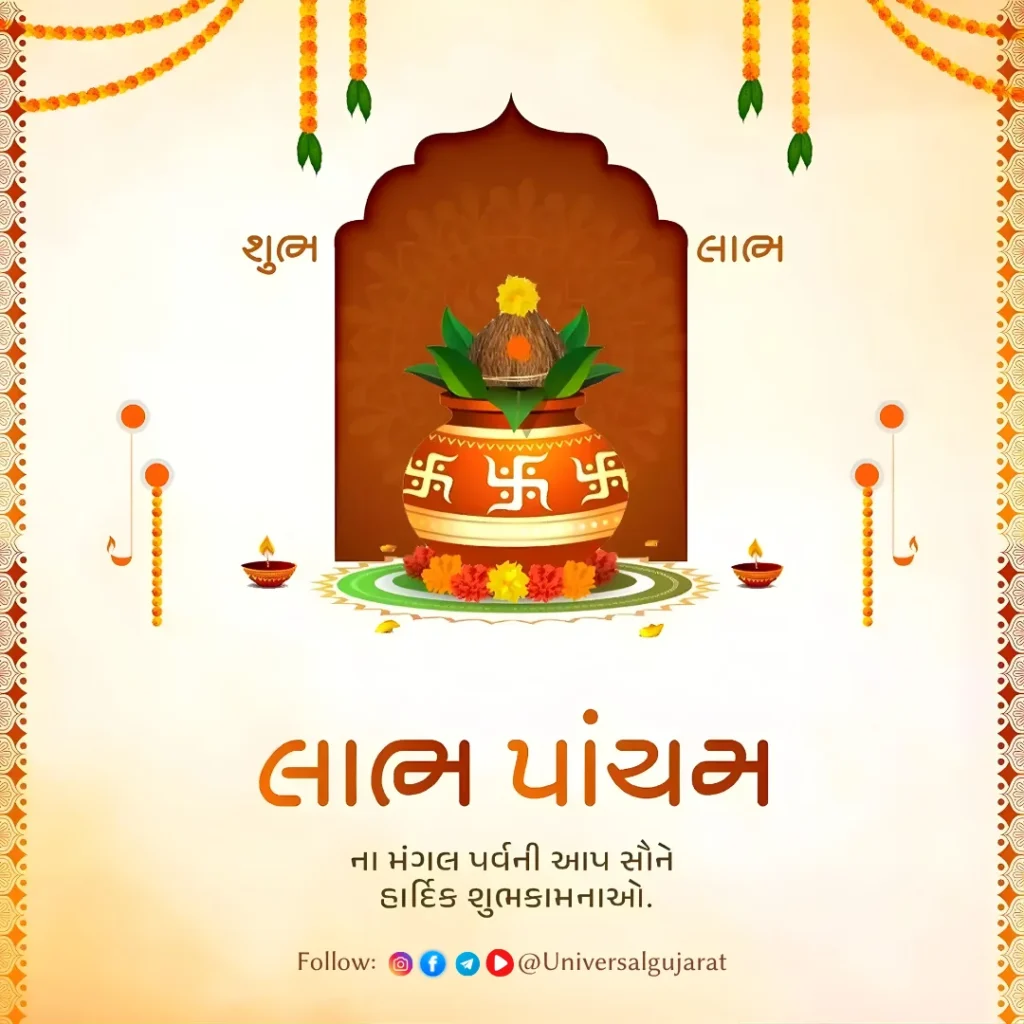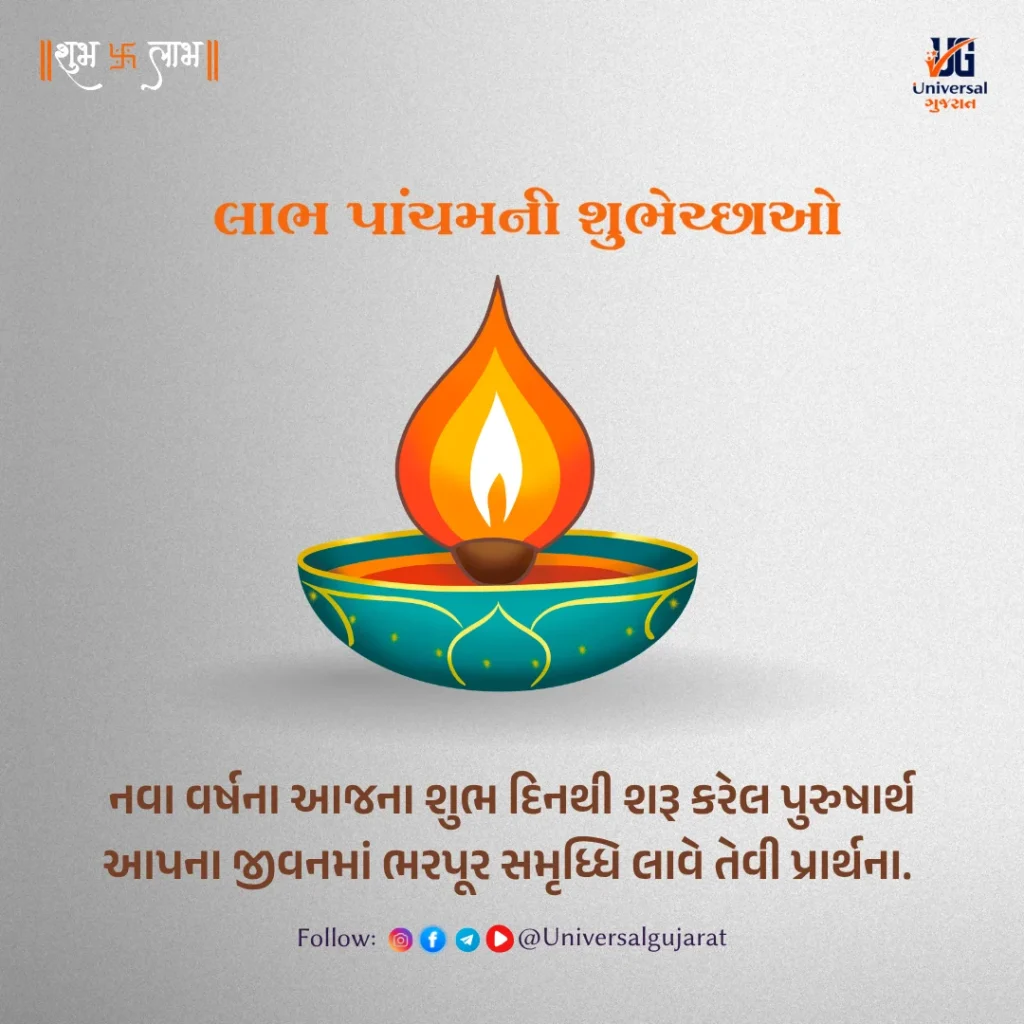 લાભ પાંચમના શુભ દિવસની આપ સૌને સફળ અને સમૃદ્ધ ભવિષ્યની ખૂબ ખૂબ શુભેચ્છાઓ.