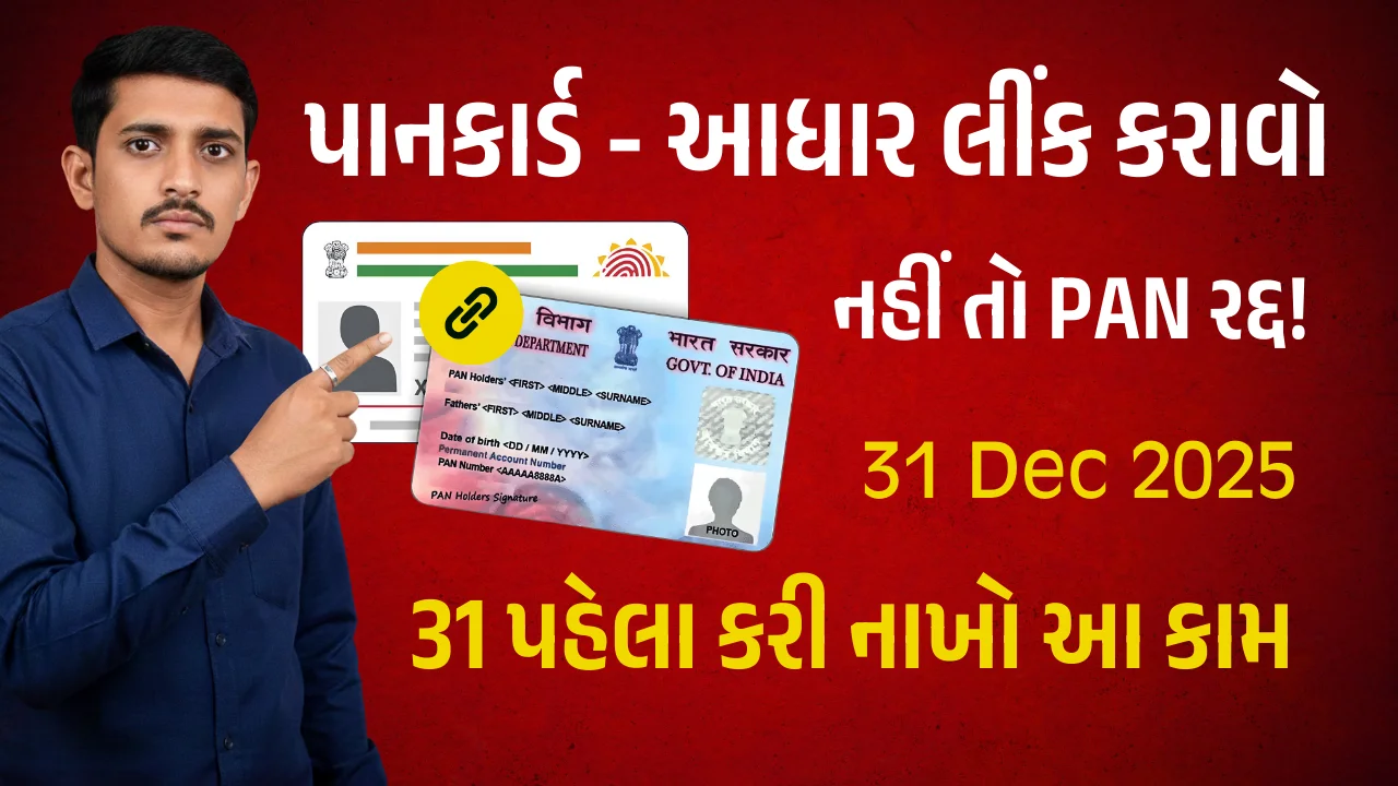 Step-by-step PAN Aadhaar linking process guide in Gujarati.
